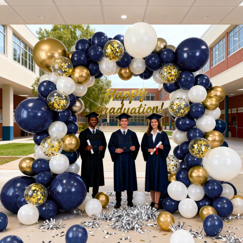 - 【Friendly Note】 : Please avoid exposing the navy blue balloon arch kit to high temperatures, sharp objects, or excessive friction to prevent bursting. If the navy blue and gold birthday decorations kit don't meet your needs or have any question, please contact us immediately, we will solve it for you right away.